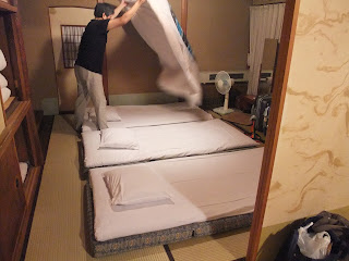温泉旅館都是下午3:00 check in,上午10:00 check out,一般都會離開時才付款 (我這次例外,因為要趕飛機。)