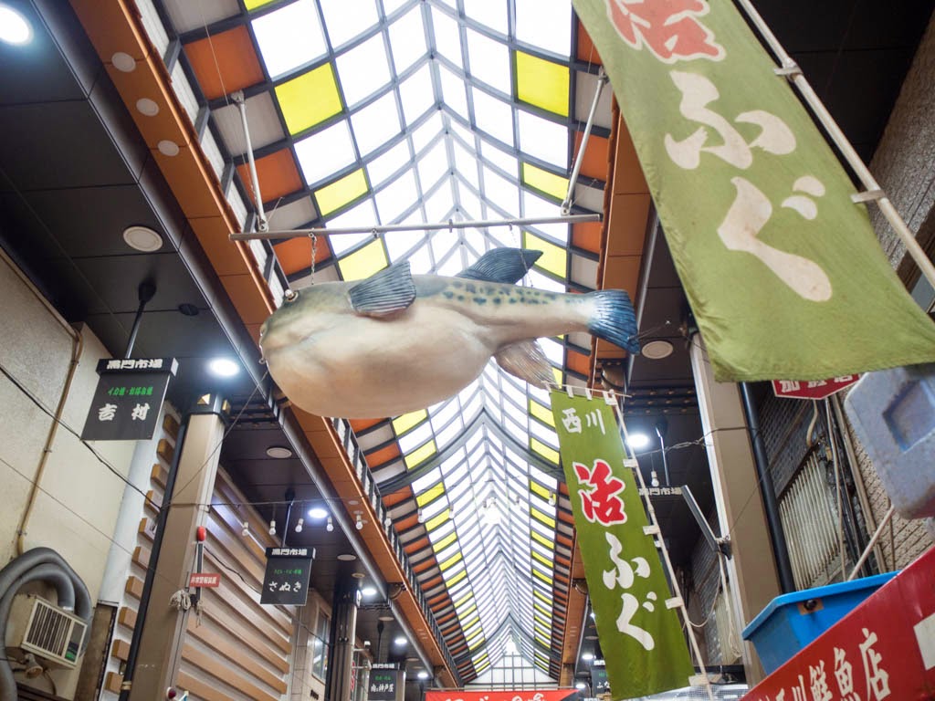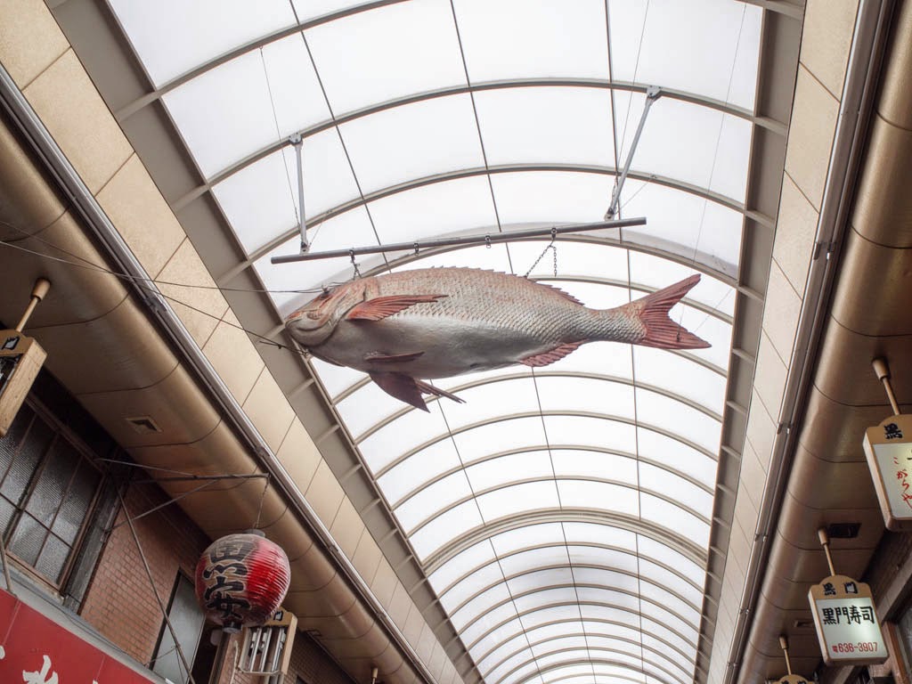 黑門市場有數個出入口,怕認不到路,可認住天花板的大魚標記