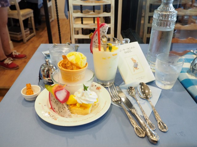 每張檯都放著一本比得兔的故事書(當然是日文版啦)