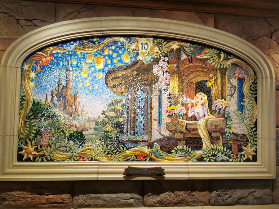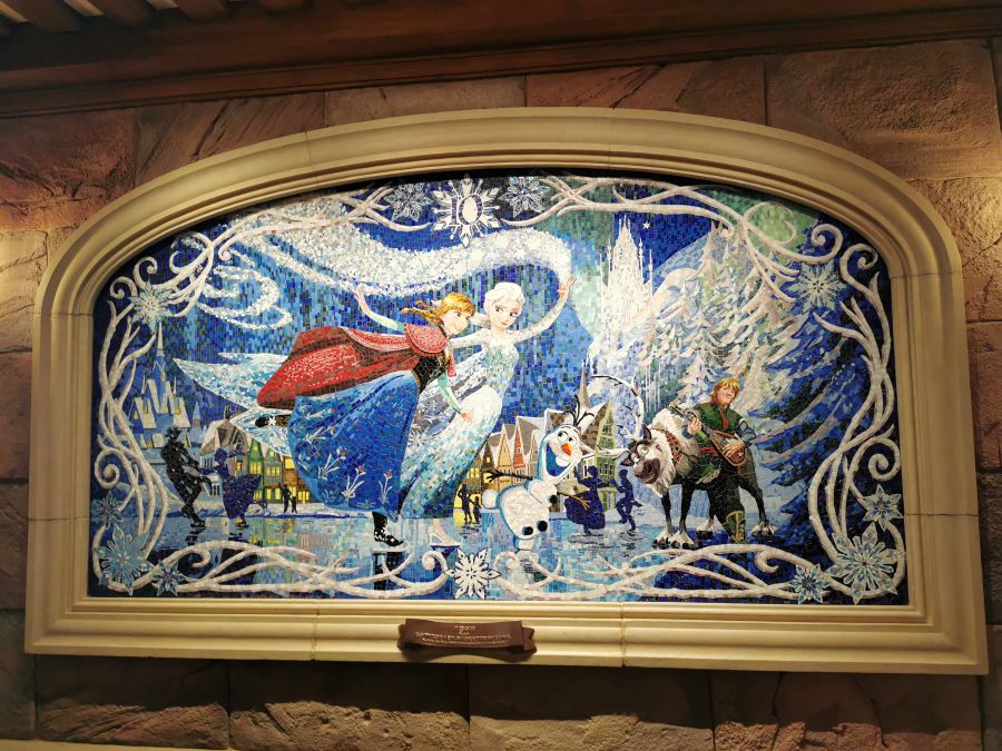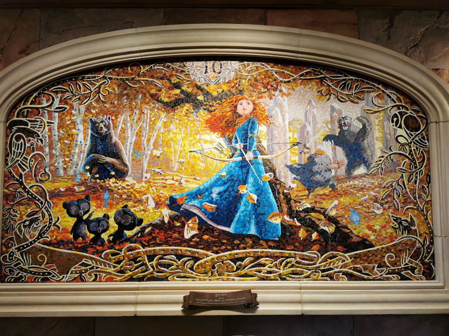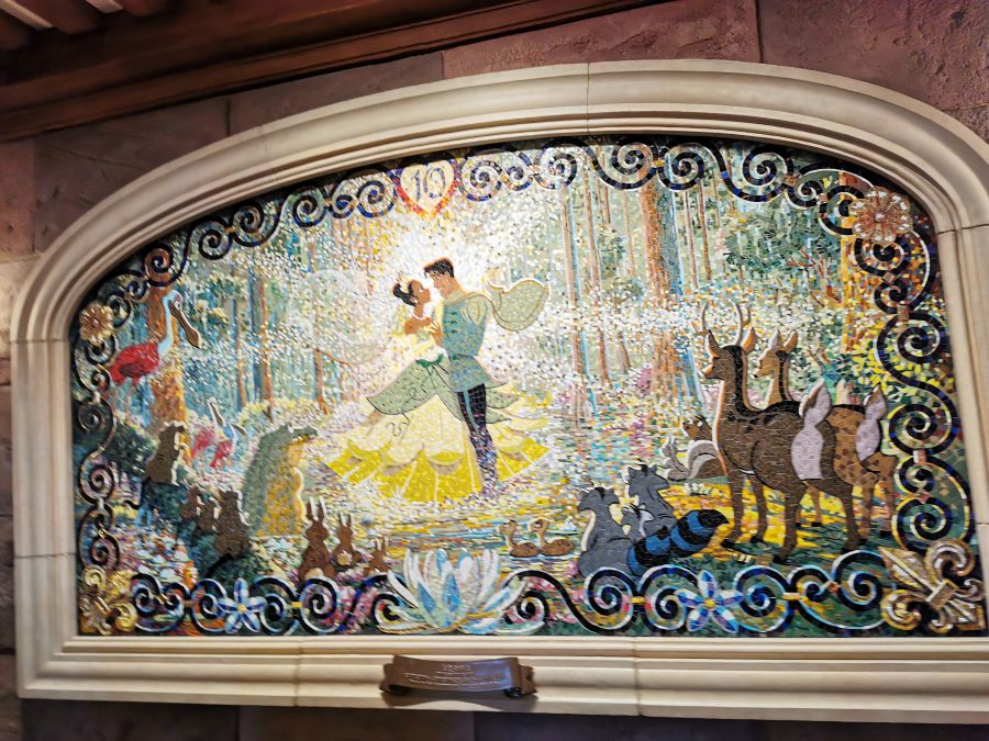 城堡餐廳外,有四幅很漂亮的公主馬塞克畫