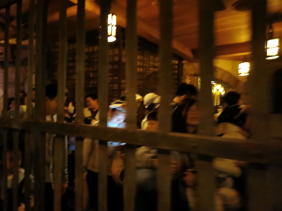 晚上入園,這次去了排加勒比海盜,系統顯示排45分鐘,這次我們就不買快證了,排就排吧!